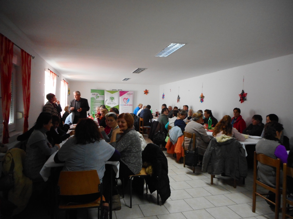 Domjenak Udruženja „BARANJA“21.12.2018. 12:57 U srijedu, 19. prosinca 2018. godine održan je domjenak kojim je udruga obilježila svoje aktivnosti u 2018. godini. Događanje je održano u Mađarskoj kući u Lugu, s početkom održavanja u 12:00 h. Na domjenak su se odazvali predstavnici raznih institucija, općina, škola, udruga te zaposlenici Udruženja. Također, domjenku su prisustvovale i žene koje su zaposlene ili će u narednom razdoblju biti zaposlene u okviru projekata koje provodi Udruga iz pozivnog programa „ZAŽELI – Program zapošljavanja žena“. Povodom obilježavanja domjenka za sve prisutne bio je posluživan tradicionalni baranjski čobanac. Tom prilikom izvršni direktor Udruge gosp. Milorad Nenadović zahvalio se prisutnima na dosadašnjoj suradnji sa željom da se ona nastavi i u idućim godinama te je svima, čestitao nastupajuće blagdane i zaželio mnogo sreće i uspjeha u novoj godini.