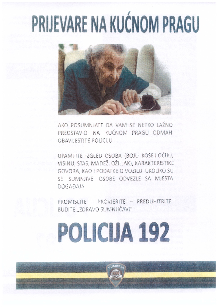 Kroz razgovor korisnicima je ukazano na neke načine prijevara i trikova kojima se prevaranti služe te su im dani savjeti kako reagirati u slučaju uočavanja sumnjivih osoba ili radnji. Također su podijeljeni letci sa informacijama i istaknutim brojem telefona PU Osječko Baranjske na koji se može prijaviti eventualno kazneno dijelo.