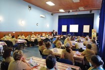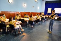 Održana Psihološka radionica podrške za zaposlenice na projektu „Susjedska pomoć u Baranji“ 07.07.2021. 10:49 U okviru projekta „Susjedska pomoć u Baranji“ iz Programa „Zaželi - faza II“ u petak, 02.07.2021. godine u Domu kulture u Bilju održana je inicijalna cjelodnevna radionica „Uvod u komunikacijske vještine“ sa zaposlenicama projekta, koju je pripremila i vodila prof. psih. Ljiljana Šapić Kozar. Radionici je prisustvovalo svih 42 zaposlenice te koordinatorice i asistentica projekta.