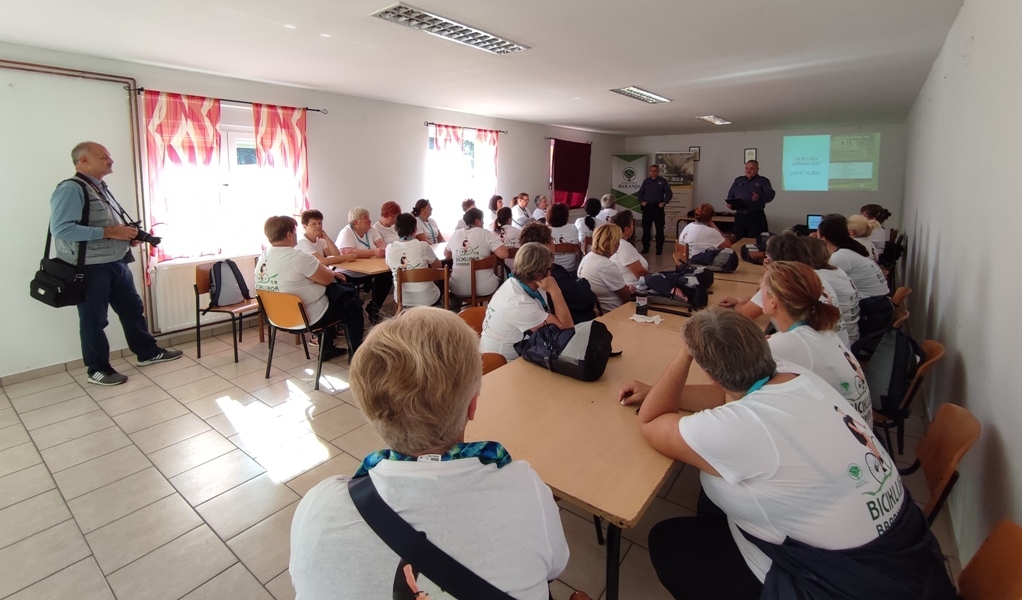 Zaposlenice na projektu „Baranjka pomaže susjedima“ na edukativno informativnoj radionici10.10.2022. 12:04 U okviru biciklijade „Baranja 2022“ koja je održana u Lugu u petak, 07. listopada 2022. održana je edukativno informativna radionica na kojoj su aktivne sudionice bile zaposlenice na projektu „Baranjka pomaže susjedima“ iz programa ZAŽELI – FAZA III. U suradnji s Policijskom postajom Beli Manastir za zaposlenice su organizirane dvije interaktivne, edukativne radionice o sigurnosti biciklista u prometu i o prijevarama na kućnom pragu. Obadvije teme su aktualne u kontekstu provođenja projektnih aktivnosti te su uz zanimljiva uvodna izlaganja policijskih službenika zaposlenice su navođenjem primjera iz svakodnevne prakse i pitanjima upotpunile i proširile teme radionica.