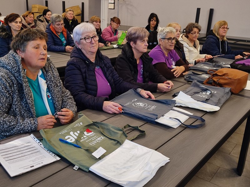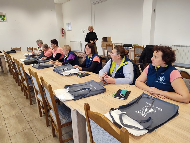 Radni sastanak je bila prigoda da se svim zaposlenicima projekta i krajnjim korisnicima projekta- primateljima usluge potpore i podrške, podjele u predblagdansko vrijeme novogodišnji zidni kalendari nabavljeni iz sredstava projekta, kao i promidžbeno radne platnene torbe za zaposlenike projekta primjenjive u poslovima nabave namirnica, lijekova i dr. za korisnike projekta. Zidni kalendari planeri i platnene torbe su dodatni način informiranja i vidljivosti u svrhu podizanja svijesti o projektu i financijskom doprinosu sredstvima EU.